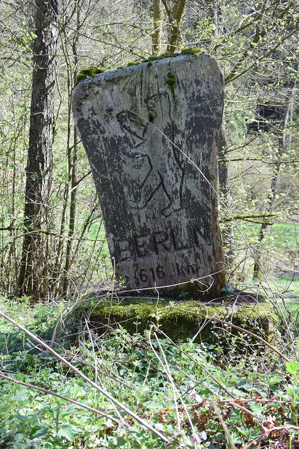 Ein etwas merkwürdiger Standort. Der Bär scheint in den Wald gelaufen zu sein.