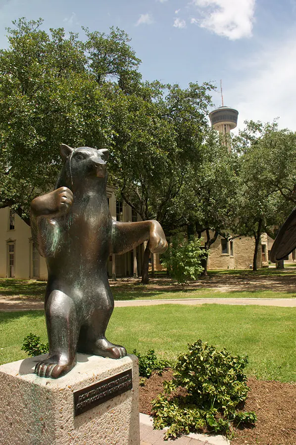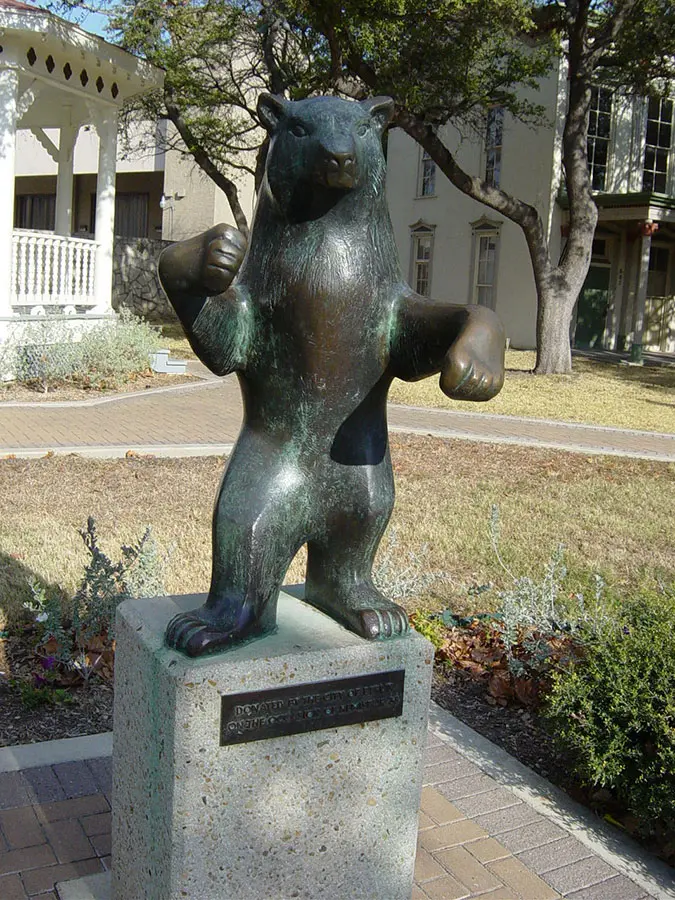 Heute steht der Bär vor dem historischen Half House im Hemisfair Park.