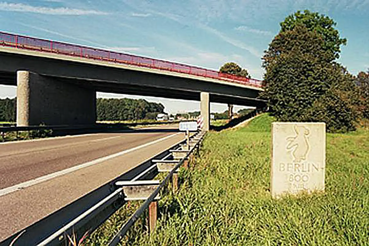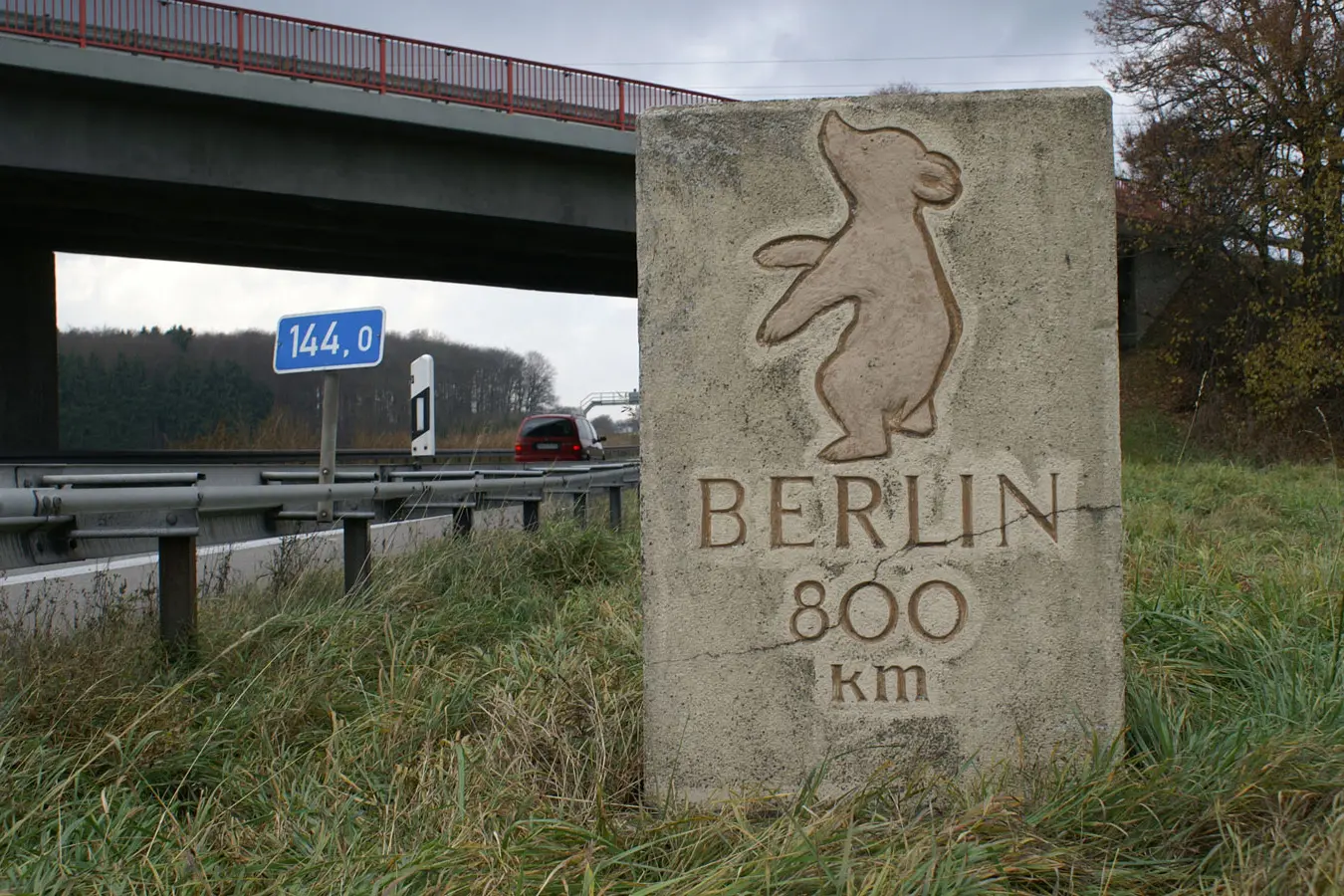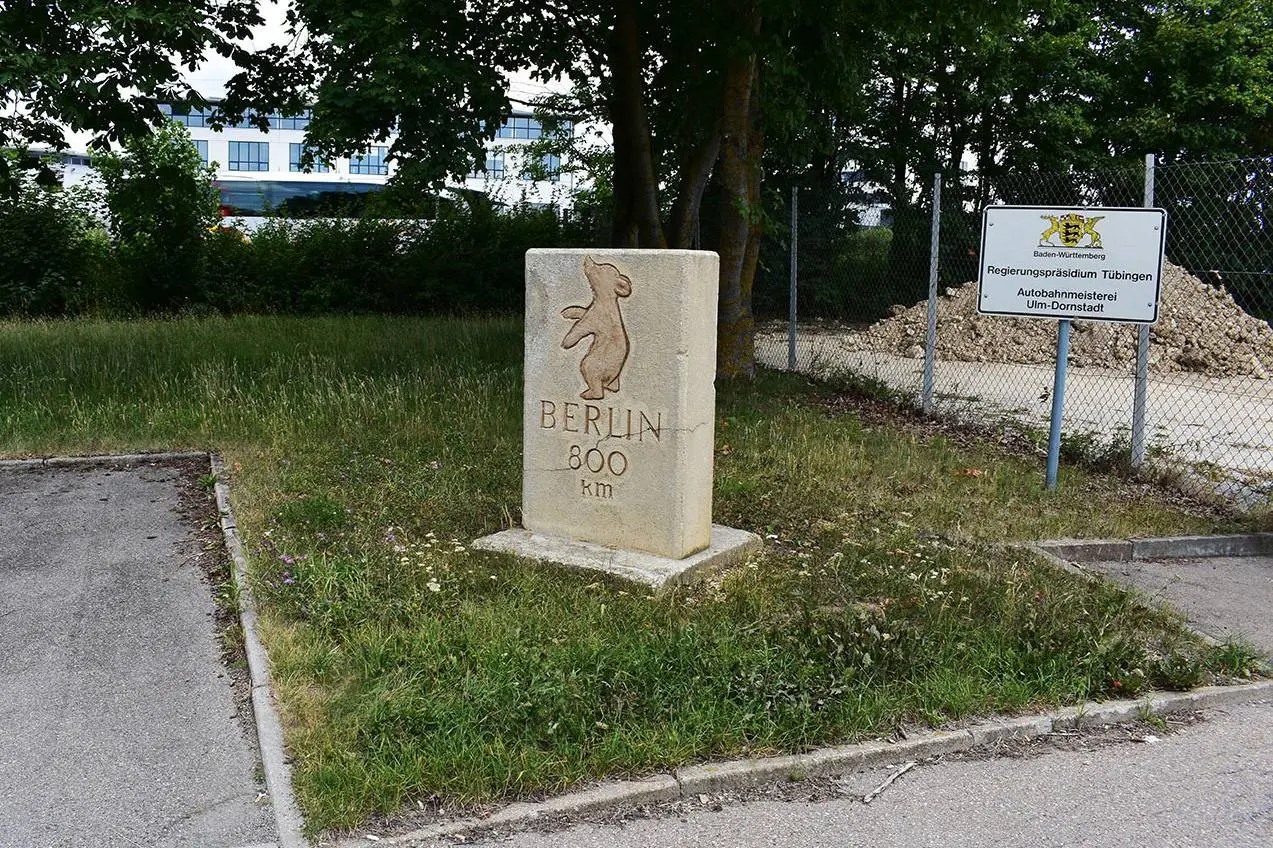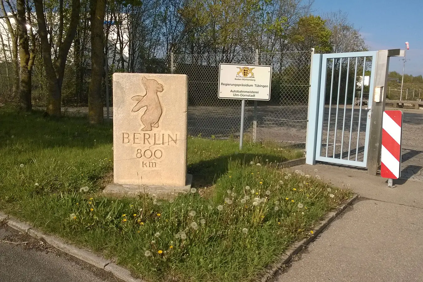 Der Stein steht nun vor der Autobahnmeisterei Ulm-Dornstadt.