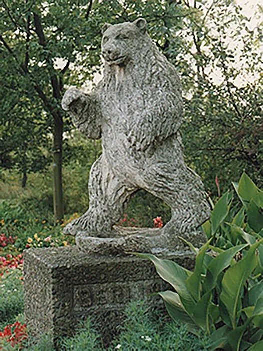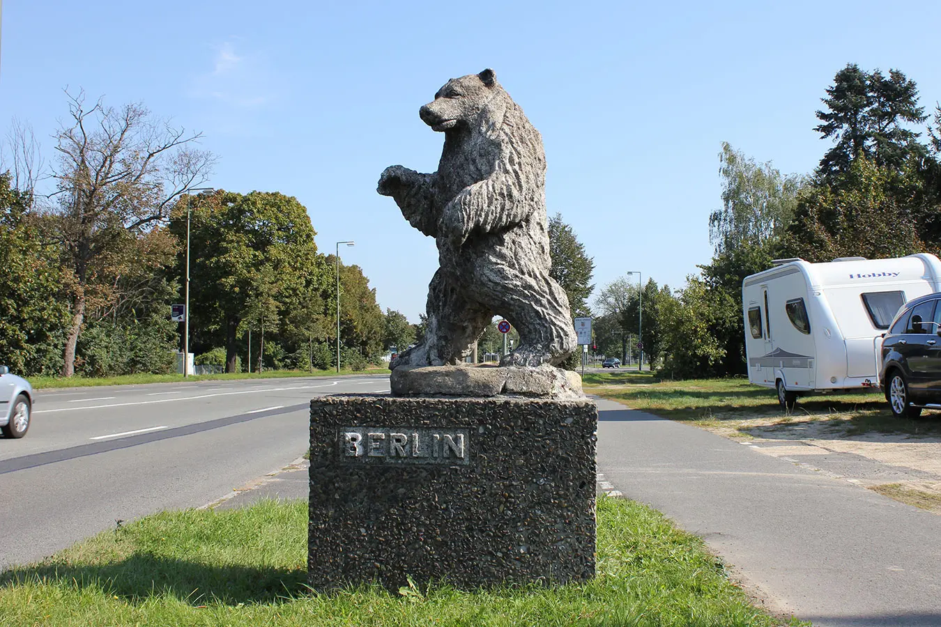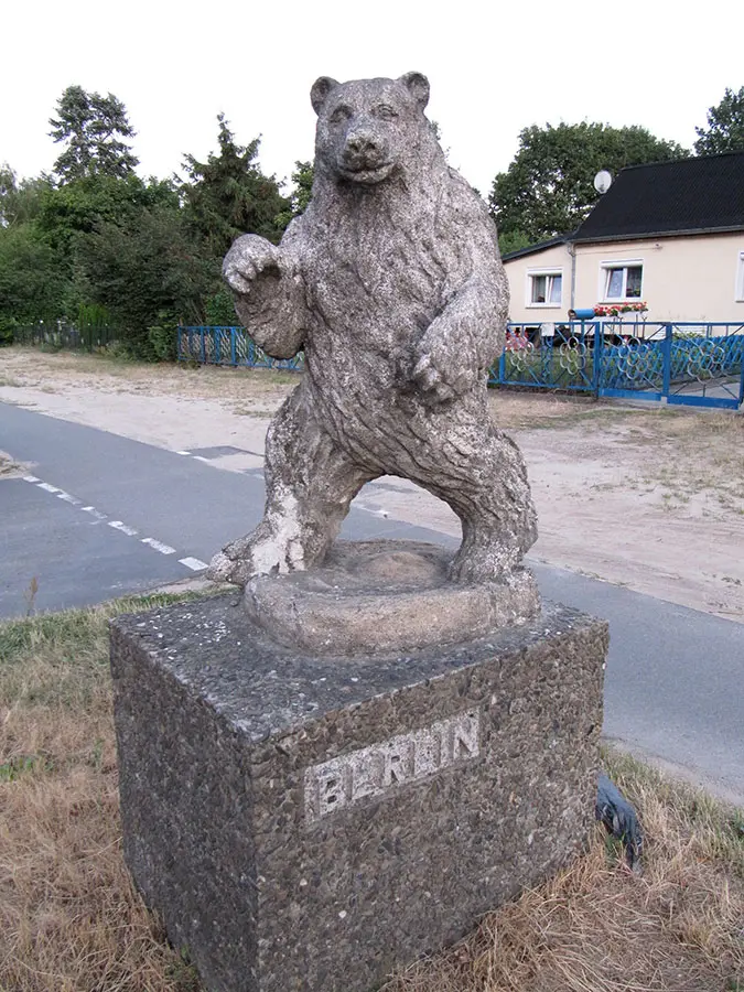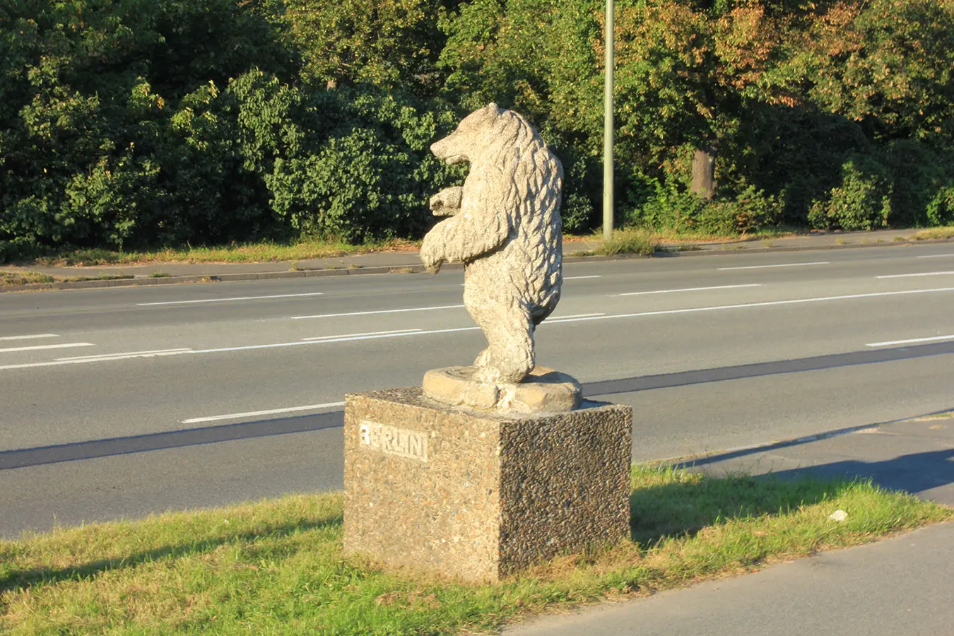 Seit 1990 steht der Berliner Bär an der ursprünglichen Grenze Berlins.