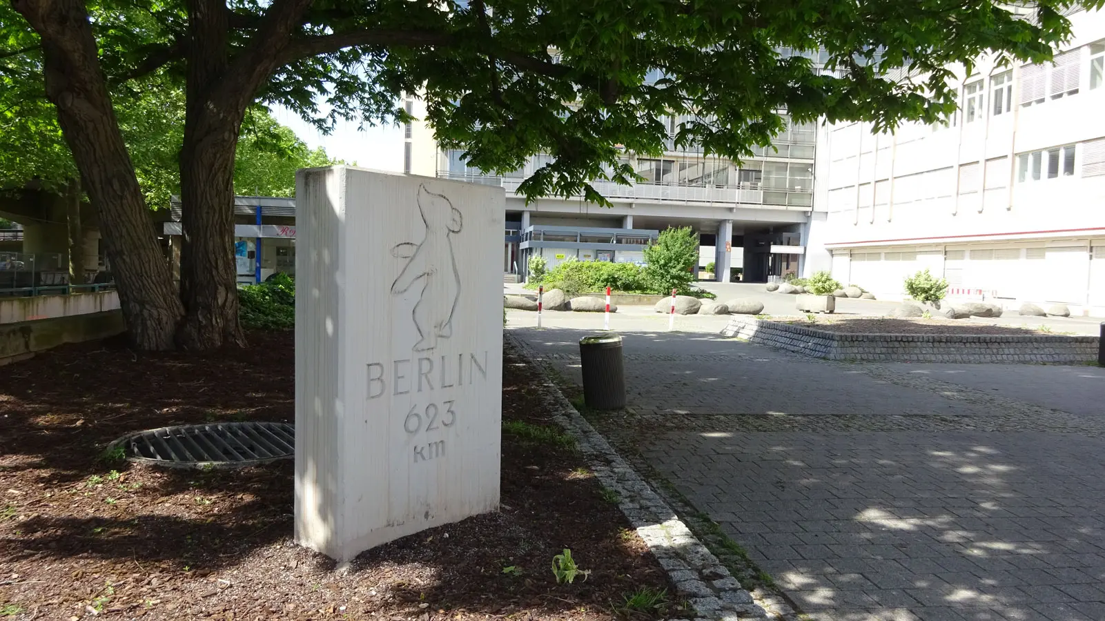 Der Stein steht seit der Neugestaltung des Berliner Platzes 1991 dort.