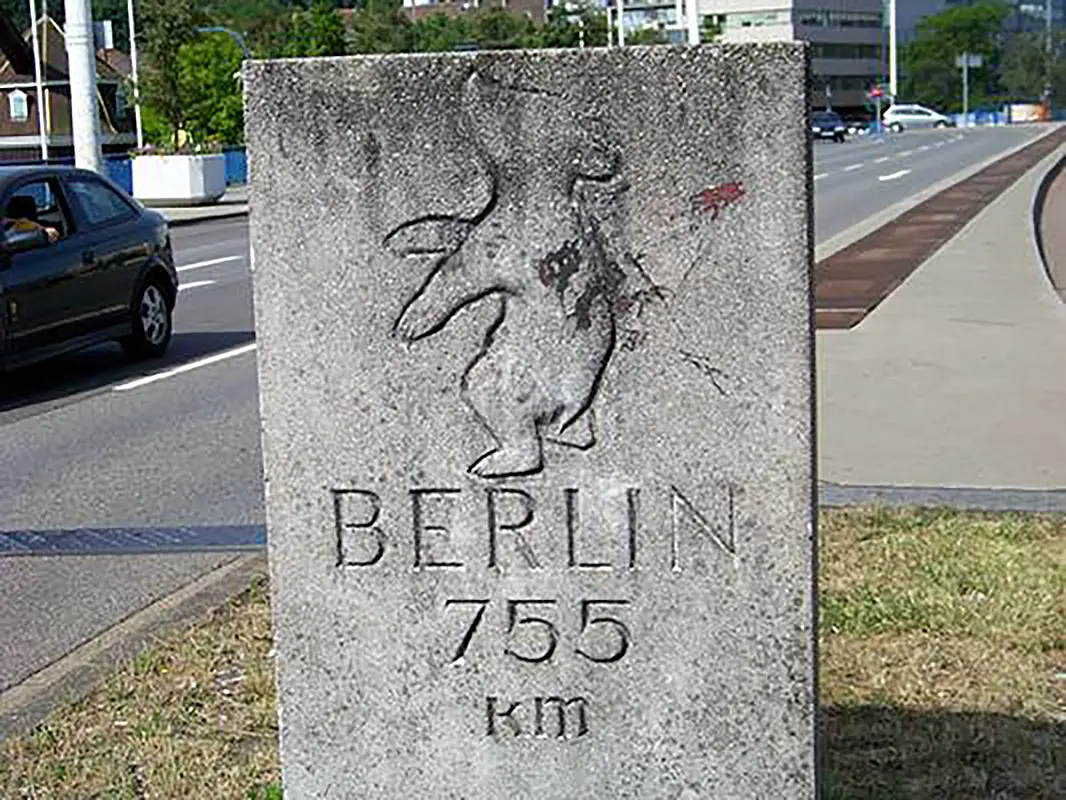 Berliner Meilenstein auf der Wilhelm-Heinrich-Brücke in Saarbrücken, Foto: Z thomas,
